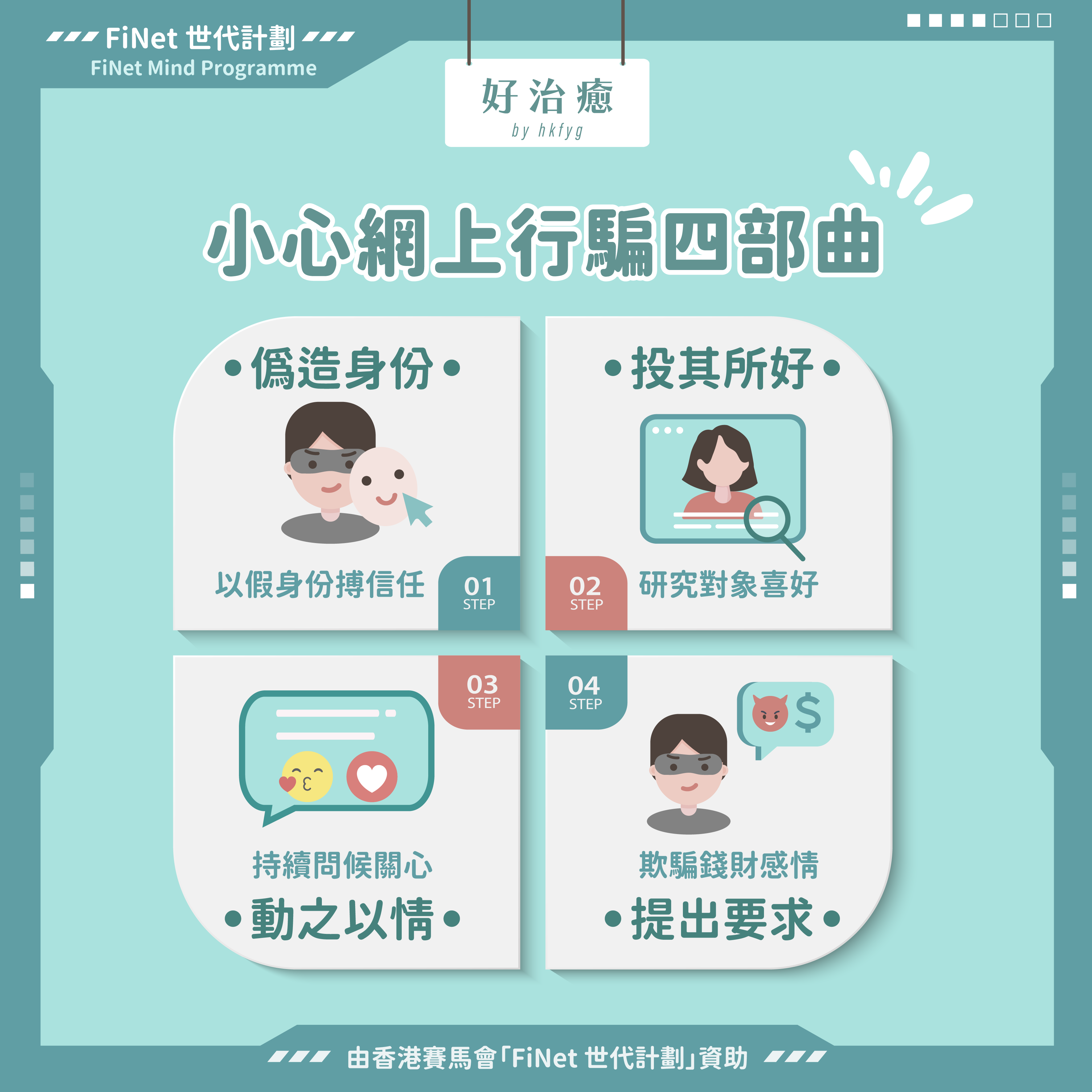 在現今的網絡世界,不法之徒會利用匿名操作,濫用網上社交平台,盜取金錢和欺騙感情。以下我們會分析網上騙徒如何利用心理戰術,一步步攻陷人心。大家切記提高警覺,不要受騙! 🎭 第一步:偽造身份 騙徒會偽裝成各種身份,如成功商人、俊男美女或知名人士等,事先花心思經營看似真實可信的社交帳號,發布優質品味生活貼文或激勵人心的正能量文章,製造出成功人士的假象,令受害人放下戒心。 . 🎯 第二步:投其所好 騙徒會仔細研究受害人的社交媒體帳號,找出對方的性格、喜好、需求和弱點,然後假裝大家興趣價值觀一致,製造惺惺相惜的假象,拉近彼此距離。 . 💖