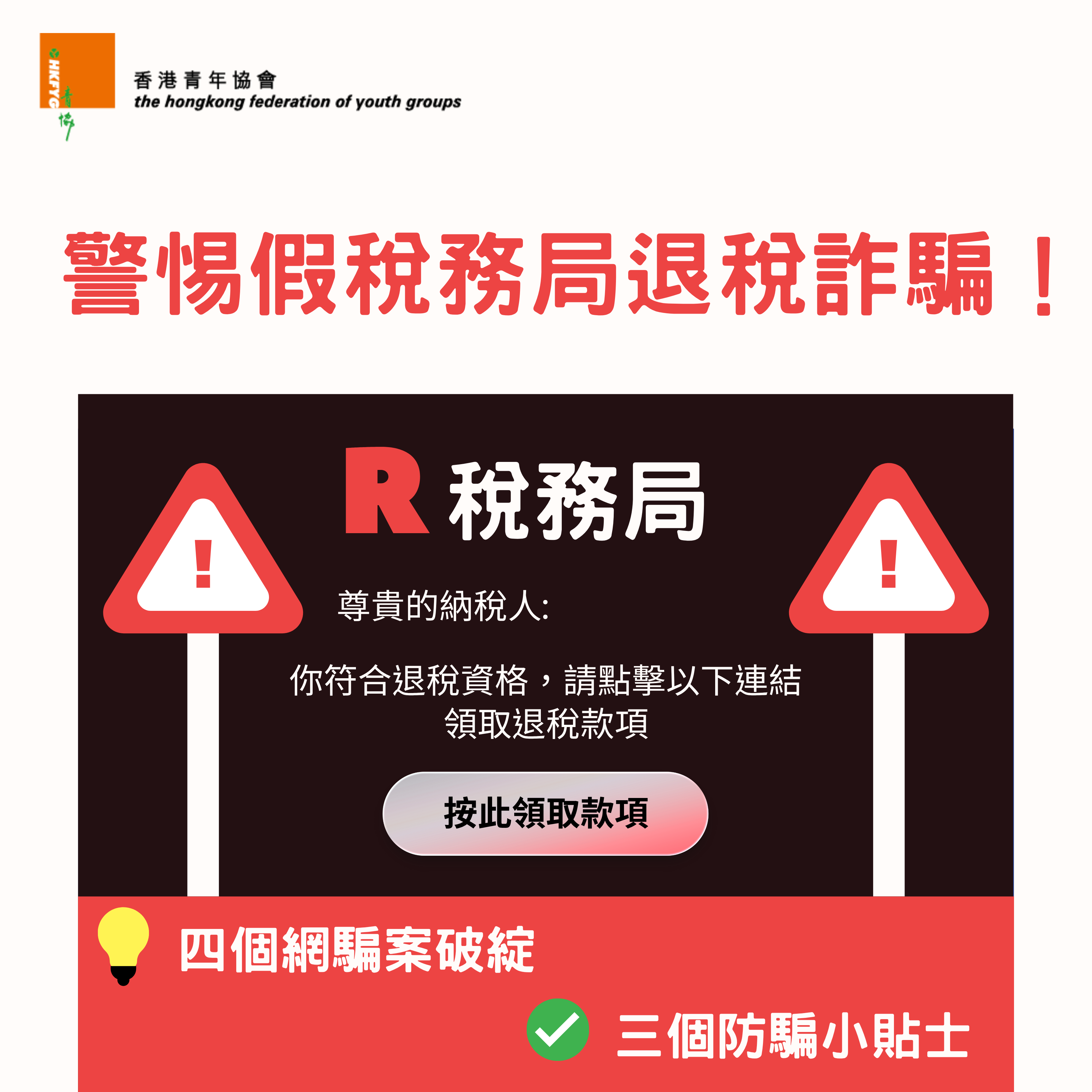 近日有市民在社交媒體上反映收到疑似假冒香港稅務局的電郵,聲稱「有退稅資格通知」並附有連結,誘導市民點擊取款。其實這類似的行騙手法屢見不鮮,只是所使用的平台有所不同,包括社交媒體(如WhatsApp) 、電話短訊(SMS)及偽冒網站。以下便是近日假冒稅務局電郵的可疑之處: 1)📧發送的電郵並非稅務局常用地址 這些網絡騙案通常的最大破綻就是騙子會使用非官方電郵地址發送給受害人, 盡管電郵地址看起來非常相似(採用類似字母如O與0),但只要仔細查看,便會發現地址並非正確。 2)🔲電郵中稅務局的標誌比較模糊 我們亦發現假冒電郵中的稅務局標誌解析度非常低,甚至出現「起格」的情況,極大可能是騙徒從正式的稅務局網站截圖而來。 3)💬稅務局的名稱前後不一 電郵中假冒的稅務局,一時使用「稅務局」,一時又使用「稅務署」,而政府部門一般會使用正規的稱謂或名字。 4)💸退稅手法奇怪